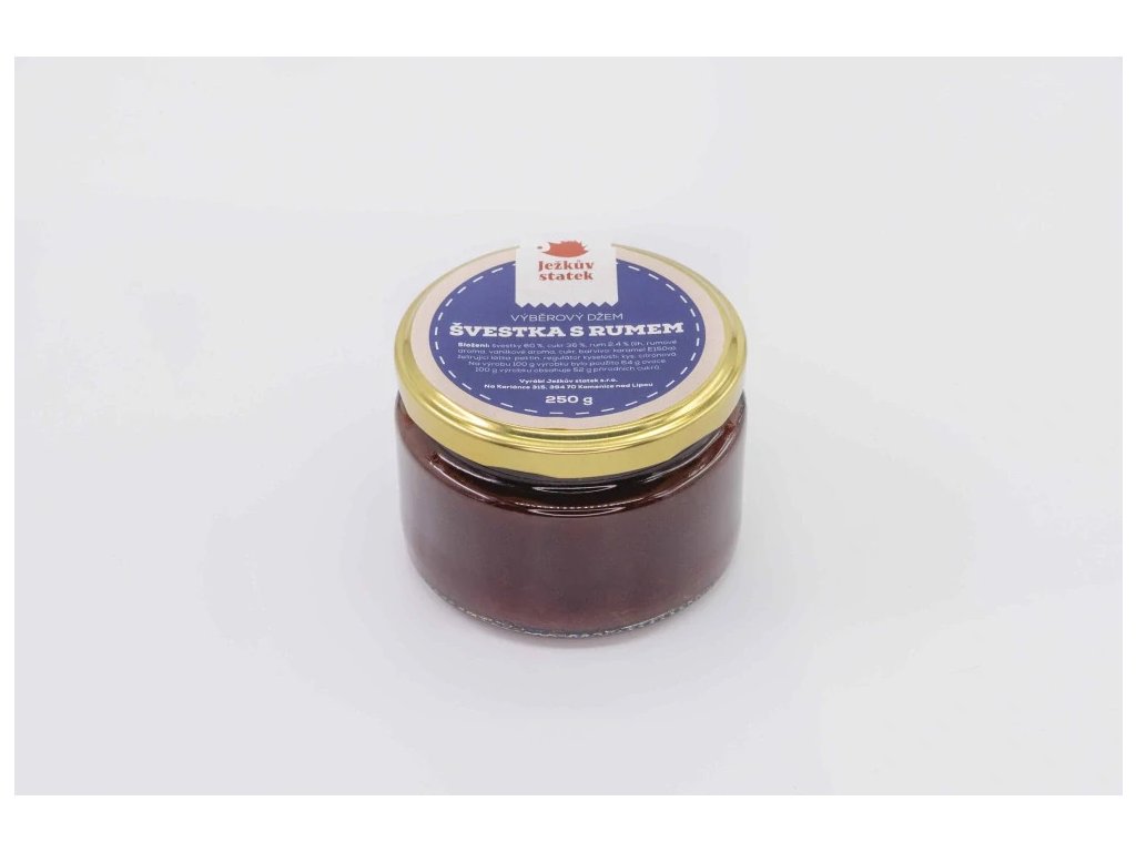 ⇢ složení: švestky 60%, rum 2,4%, cukr, jablečný pektin, kyselina citronová