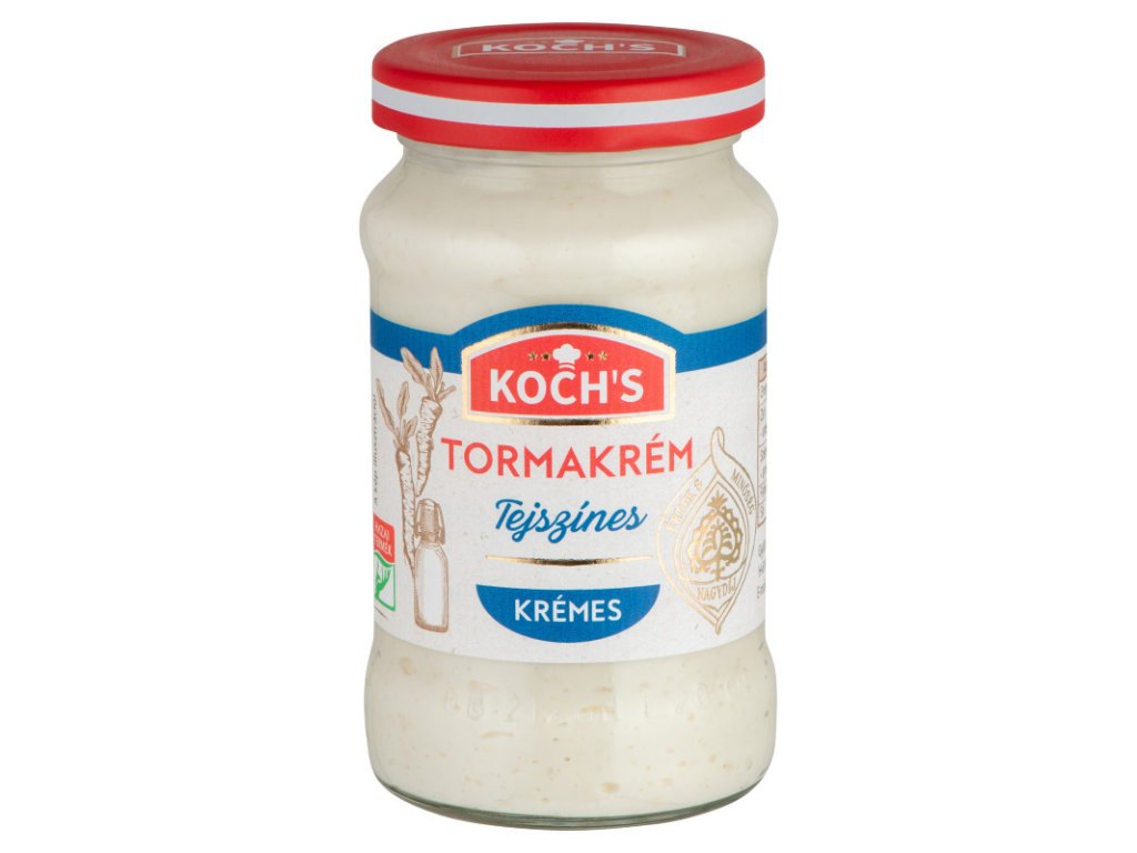 Objevte intenzivní, ale jemnou chuť maďarského Tormakrému od tradiční značky Koch’s. Tento smetanový křenový krém představuje dokonalou harmonii ostrého, čerstvého křenu a lahodné, krémové smetany. Tormakrém se vyrábí podle osvědčené maďarské receptury a přinese na Váš stůl kousek maďarské kuchyně. Je to nepostradatelný společník pro každé slavnostní i běžné stolování. Perfektně doplní pečené a uzené maso, šunku nebo klobásy, skvěle se hodí k vařeným vejcím nebo jako základ pro pikantní pomazánky a je tradiční přílohou k maďarskému guláši nebo k rybím pokrmům. Dopřejte si originální křenový krém Koch’s a dodejte svým pokrmům ten správný říz a jemnou texturu.