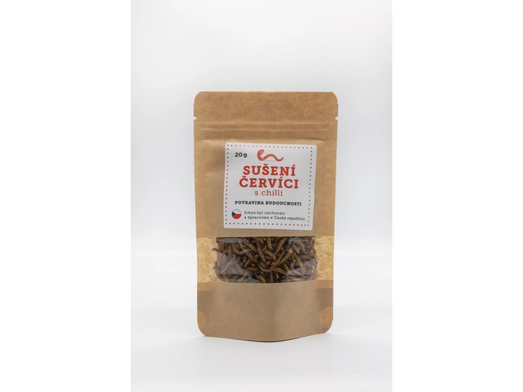 ⇢ složení: larvy potemníka moučného, sůl (2%), chilli (0,5%)